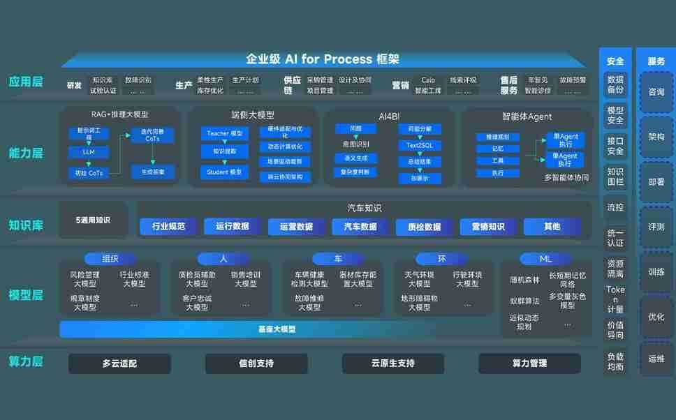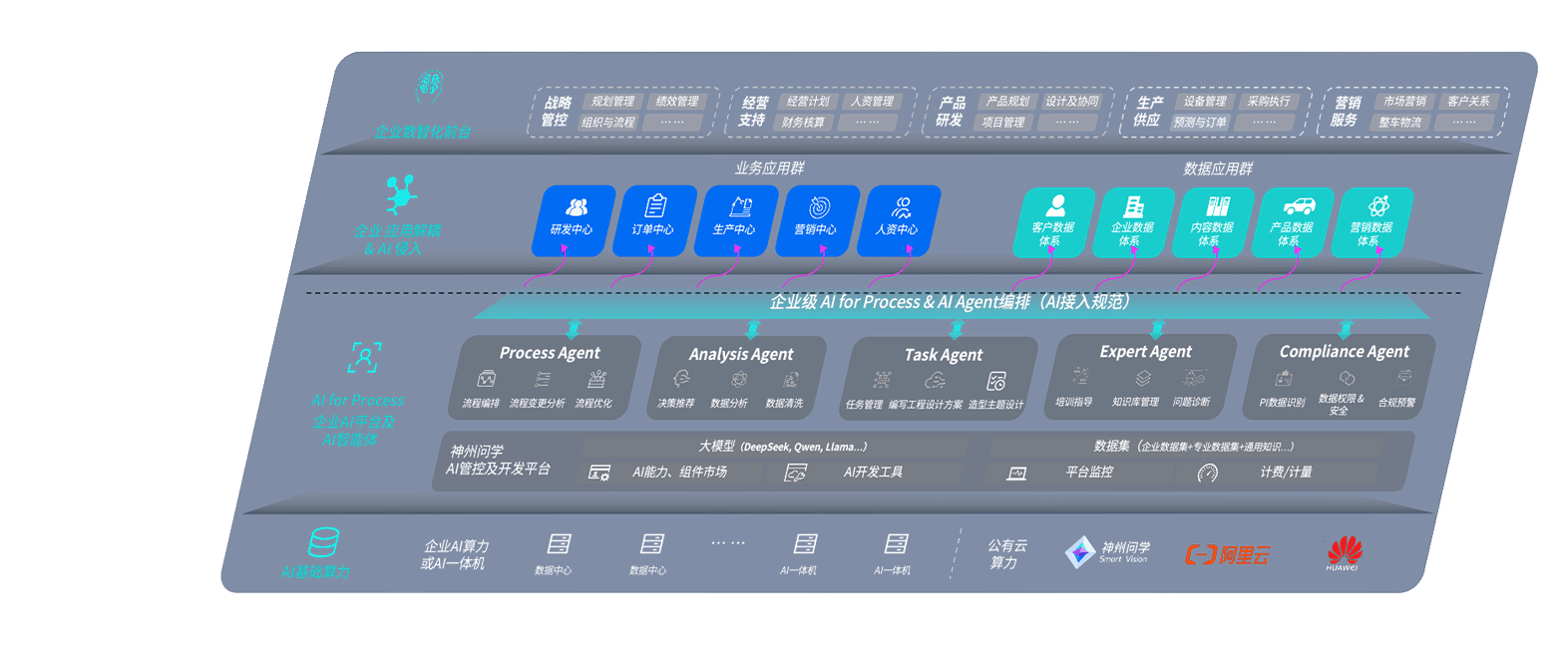 端到端的一站式AI工作空间深度融合了从企业战略规划到日常经营的全流程业务板块,,,定向解决车企内部领域多、、、、部门多、、链条长、、场景碎片化等难题,,,支持车企快速构建以AI为核心的生产力写作体系,,,实现任务执行与AI能力的无缝集成与交互